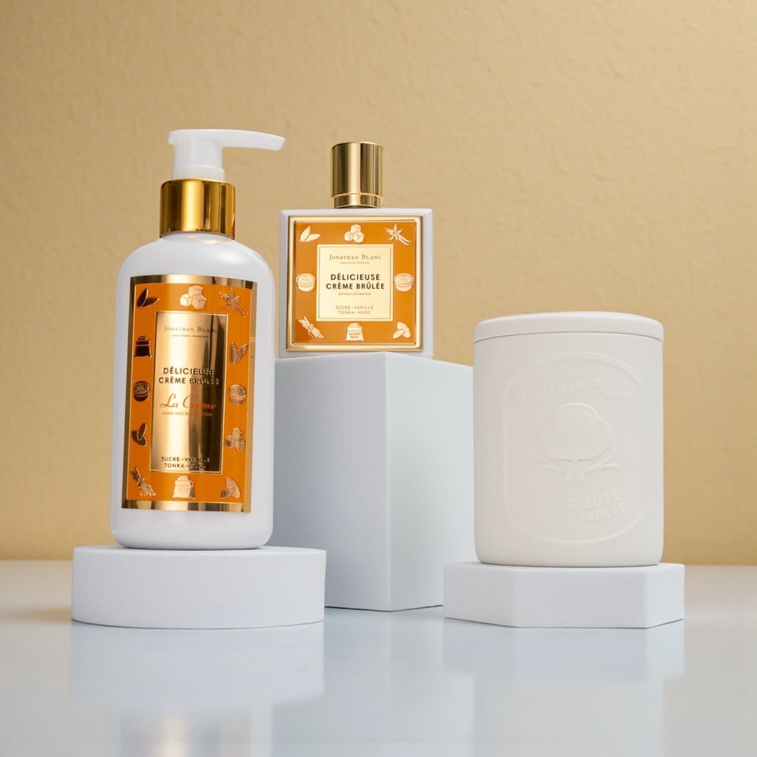 Parfum 50 ml · Lotion Mains & Corps 250 ml · Bougie parfumée 120 g
